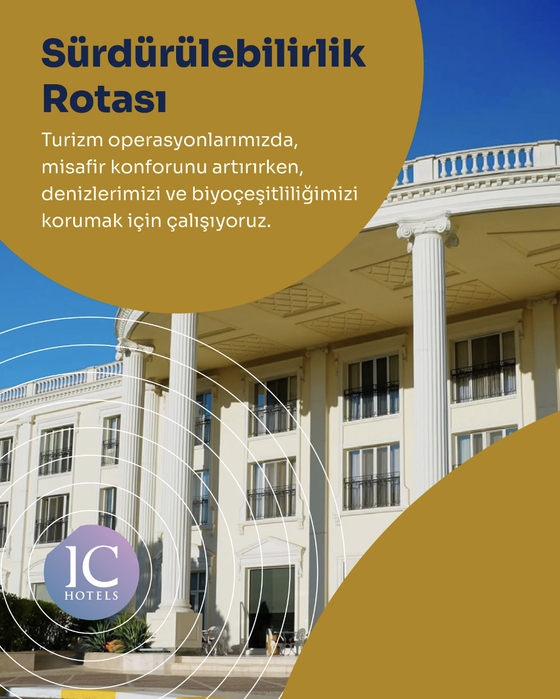 At IC Hotels Green Palace & Villas, IC Hotels Santai Family Resort, IC Hotels Airport, and Çeşme Marina, water that needs to be discharged after backwashing through the ozmos treatment system is recovered and used for garden irrigation. In the pool machinery rooms, water from leaks is redirected to the balance tank with the help of a pump for reuse, and water-saving aerators are used in fixtures to conserve water. All detected water leaks within the hotel premises are repaired, and instead of area washing, mobile cleaning vehicles are used to minimize water usage.